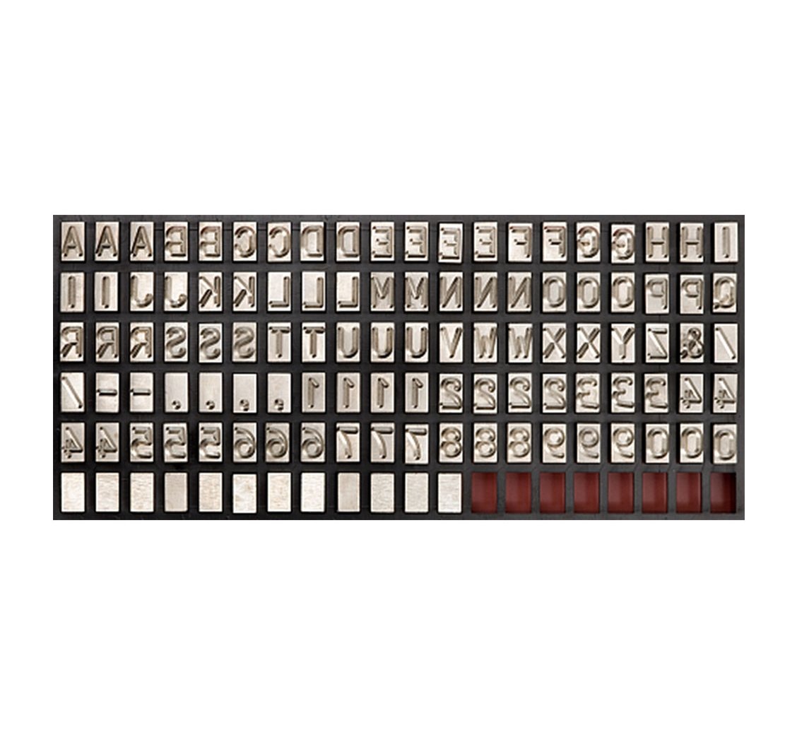 A high precision interchangeable Marking Tool Set for quick, straight and accurate multi-character marking by hand and hammer. Sharp Faced engraving style to produce clear positive impressions. Comprises 100 alpha-numeric and punctuation characters according to the most common use plus spacer pieces for non-marking positions and a single row Hand Holder supplied in a strong case with inserts for accurate storage.