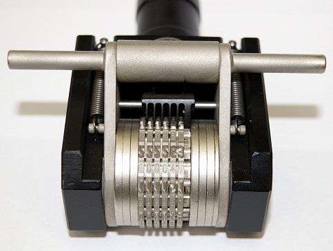 - Tell-Tale characters in the wheel grooves show the characters in the marking position on the Numbering head, allowing easy selection of marking sequence when the marking head is mounted in a press or machine.
